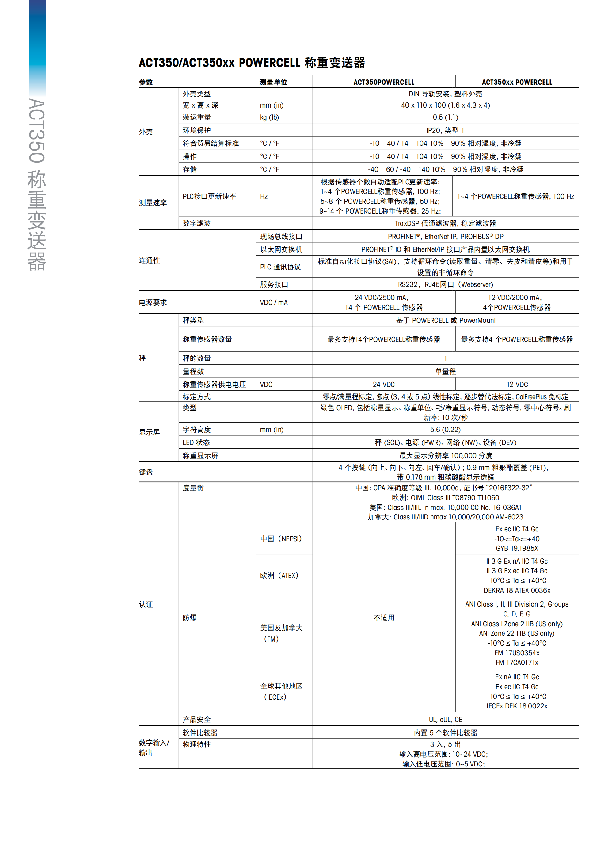 ACT350/ACT350xx POWERCELL 稱(chēng)重變(biàn)送器
